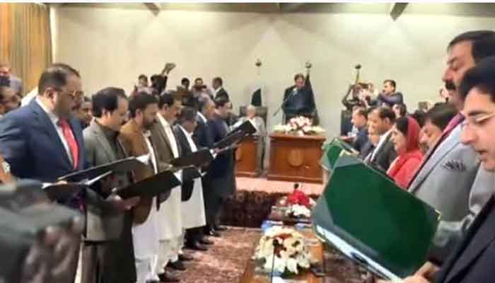 آزاد جموں و کشمیر کی 18 رکنی نئی کابینہ نے اپنے عہدوں کا حلف اٹھا لیا۔