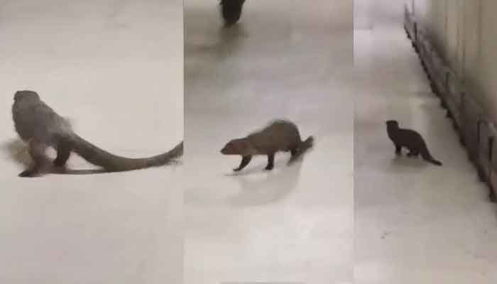 ویڈیو میں دونوں نیولے غیر ملکی ایئرلائن کے دفتر کے قریب اطمینان سے گھومتے نظر آئے جس کے باعث ناصرف عملہ خوفزدہ ہوگیا بلکہ وہاں موجود مسافروں میں بھی سخت بے چینی پھیل گئی۔