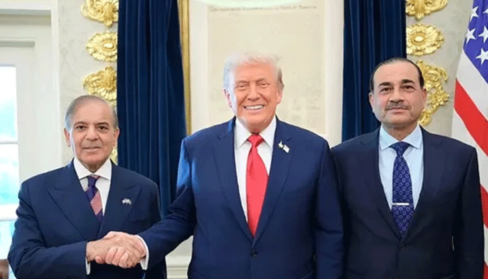 وزیراعظم آفس کے جانب سے جاری اعلامیے کے مطابق وائٹ ہاؤس میں وزیراعظم شہباز شریف اور آرمی چیف فیلڈ مارشل جنرل سید عاصم منیر نے امریکی صدر ڈونلڈ ٹرمپ سے خوشگوار اور دوستانہ ماحول میں ملاقات کی۔