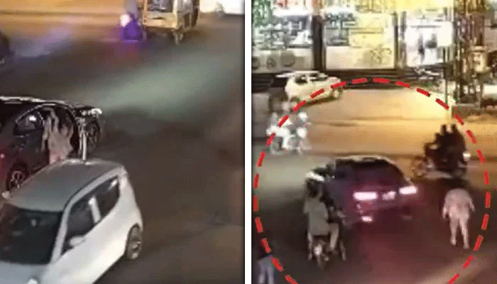 👀 خاتون نے دیکھنے کے لیے گاڑی سے باہر نکلی تو ایک ملزم گاڑی میں بیٹھ گیا pic.twitter.com/jp7dx1ojD1