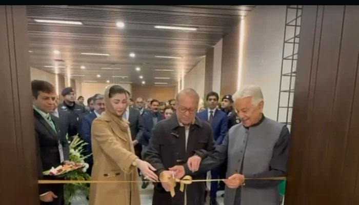 مسلم لیگ ن کے صدر نواز شریف، وزیر دفاع خواجہ آصف اور وزیر اعلیٰ پنجاب مریم نواز نے سٹیٹ لاؤنج علامہ اقبال انٹرنیشنل ایئرپورٹ کا افتتاح کردیا۔