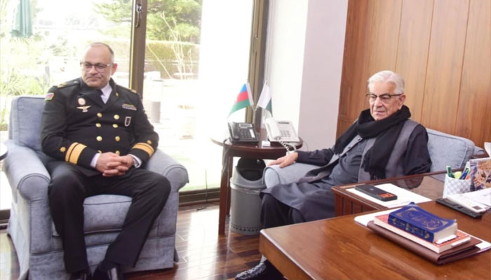 اسلام آباد:(نیوزڈیسک) وزیرِ دفاع خواجہ محمد آصف سے آذربائیجان نیول فورسز کے کمانڈر، ریئر ایڈمرل شاہین محمدوف نے آج اسلام آباد میں ملاقات کی۔