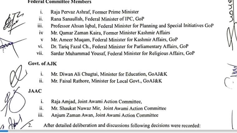 مظفر آباد (نیوز ڈیسک) وفاقی وزرا اور جوائنٹ ایکشن کمیٹی کے درمیان معاہدے کے نکات سامنے آگئے۔