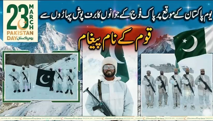 اسلام آباد (نیوز ڈیسک) یومِ پاکستان کے موقع پر برفانی سرحدی محاذوں پر تعینات پاک فوج کے جوانوں نے قوم کے نام اپنے خصوصی پیغام میں غیر متزلزل عزم اور ولولے کا اظہار کیا ہے۔
