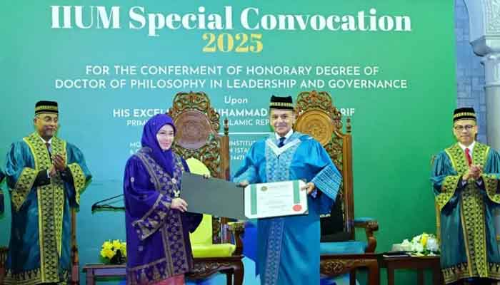 وزیر اعظم شہباز شریف کو ملائیشیا کے دورے کے دوران ملک و قوم کی خدمت میں نمایاں کردار کے اعتراف میں ڈاکٹریٹ کی اعزازی ڈگری سے نواز دیا گیا۔