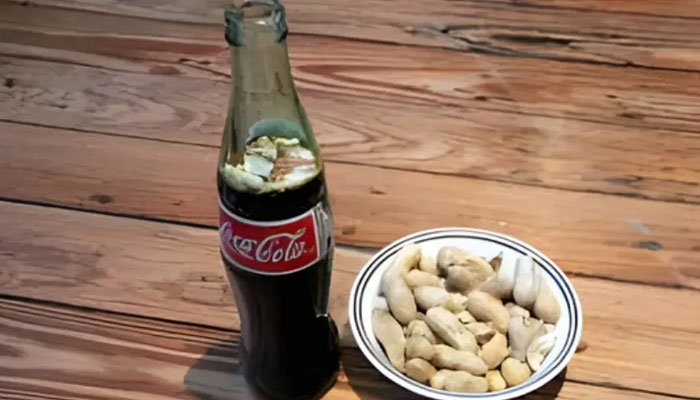 یعنی صرف ایک ٹھنڈی بوتل کوکا کولا لیں، اس میں تھوڑی سی نمکین بھنی ہوئی مونگ پھلی ڈالیں، ہلائیں نہیں، اور سیدھا بوتل سے پی لیں۔