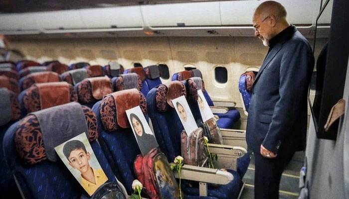 طیارے کی سیٹوں پر شہید بچوں کی تصاویر و بستے، ایرانی اسپیکر باقر قالیباف نے تصویر شیئر کر دی