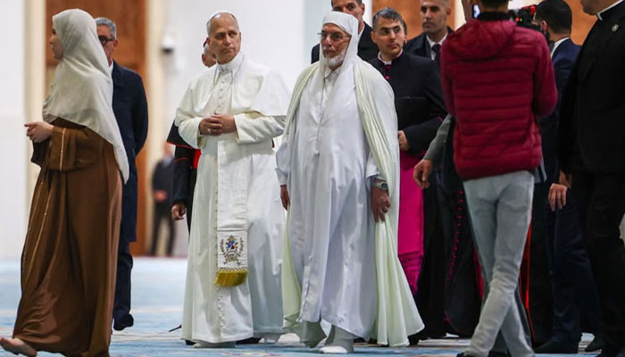 کیتھولک مسیحیوں کے مذہبی پیشوا پوپ لیو نے جوتے اتار کر الجزائر میں جامع مسجد کا دورہ کیا۔