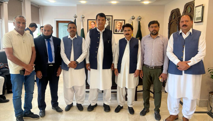 اسلام آباد : وفاقی وزیر برائے امور کشمیر و گلگت بلتستان انجینئر امیر مقام (amir muqam)سے آزاد جموں و کشمیر کے اخباری مالکان کی نمائندہ تنظیم آل کشمیر نیوز پیپرز سوسائٹی (AKNS) کے ایک اعلیٰ سطحی وفد نے اہم ملاقات کیہے ۔
