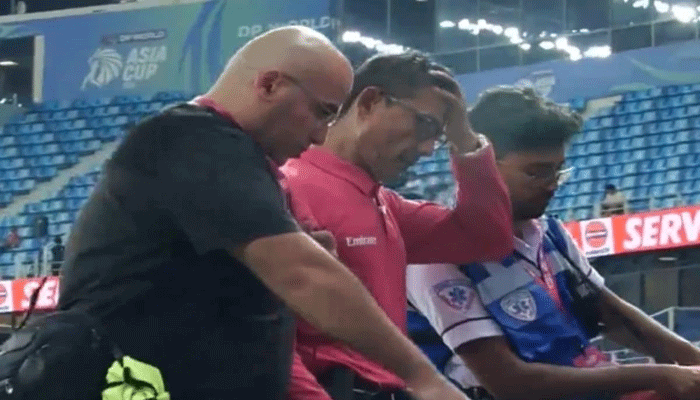 پاکستان اور یو اے ای کے درمیان ایشیا کپ میچ میں امپائر زخمی ہو کر میدان سے باہر چلے گئے۔