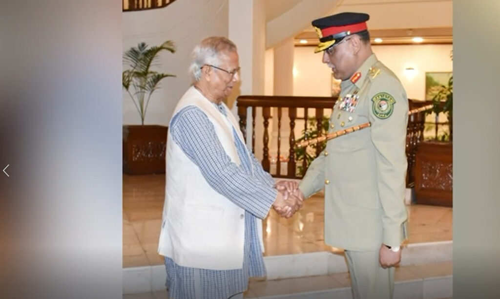 چیئرمین جوائنٹ چیفس آف اسٹاف کمیٹی جنرل ساحر شمشاد مرزا کا دورہ بنگلہ دیش ،، انہوں نے چیف ایڈوائزر محمد یونس اور عسکری حکام سے ملاقاتیں کیں۔ چیئرمین جے سی ایس سی جنرل ساحر شمشاد مرزا نے بنگلہ دیش کے دورے کے دوران نیول، ایئر اور آرمڈ فورسز کے اعلیٰ حکام سے تفصیلی ملاقاتیں کیں،، دفاعی و علاقائی سیکیورٹی، عسکری تعاون اور مشترکہ تربیتی اقدامات پر تبادلہ خیال ہوا،، دونوں ممالک نے برادرانہ تعلقات کو مزید مستحکم بنانے اور باہمی احترام کی بنیاد پر تعاون جاری رکھنے پر اتفاق کیا،، جنرل ساحر شمشاد مرزا نے اسکول آف انفینٹری اینڈ ٹیکٹکس، سلہٹ کا بھی دورہ کیا اور زیرِ تربیت افسران سے ملاقات کی۔