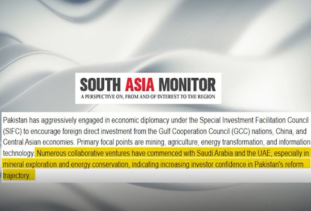 پاکستان کے معاشی استحکام کا اعتراف عالمی سطح پر ،،، بھارتی ویب سائٹ نے بھی تسلیم کر لیا کہ پاکستان جنوبی ایشیا میں معاشی بہتری کی روشن مثال بن کر ابھرا ہے۔ بھارتی ویب سائٹ ساؤتھ ایشیا مانیٹر کی رپورٹ کے مطابق 2023 سے 2025 تک پاکستان نے شاندار معاشی تبدیلی کا سفر طے کیا۔ حکومت کی مؤثر پالیسیوں اور آئی ایم ایف بیل آؤٹ پیکج نے معیشت کو استحکام بخشا۔ ایس آئی ایف سی فریم ورک کے تحت پاکستان نے کان کنی، توانائی، آئی ٹی اور زراعت کے شعبوں میں غیر ملکی سرمایہ کاری میں نمایاں اضافہ کیا،،رپورٹ کے مطابق جی ڈی پی 3 فیصد پرائمری سرپلس کے ساتھ 24 سال کی بلند ترین سطح پر پہنچی، مہنگائی 17.3 سے کم ہو کر 0.3 فیصد رہ گئی، جبکہ ترسیلات زر اور اسٹاک مارکیٹ نے بھی نمایاں ترقی دکھائی۔