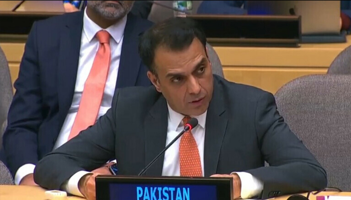 پاکستان کے نگران مستقل مندوب عثمان جاوید نے کہا کہ بھارت مقبوضہ کشمیرمیں انسانی حقوق کی سنگین پامالیوں میں ملوث ہے-یواین جنرل اسمبلی کےاجلاس سے خطاب کرتے ہوئے کہا کہ بھارت کوجوابدہ نہ ٹھہرانا اقوام متحدہ کی ساکھ پرسوالیہ نشان ہے، مقبوضہ کشمیرمیں7دہائیوں سے کشمیری حق خودارادیت سے محروم ہیں،،، عثمان جاوید کا کہنا تھا۔۔۔