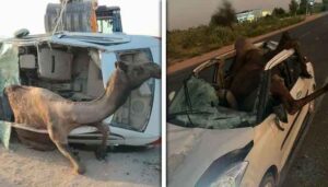 راجستھان میں اونٹ گاڑی کی چھت توڑ کر اندر پھنس گیا